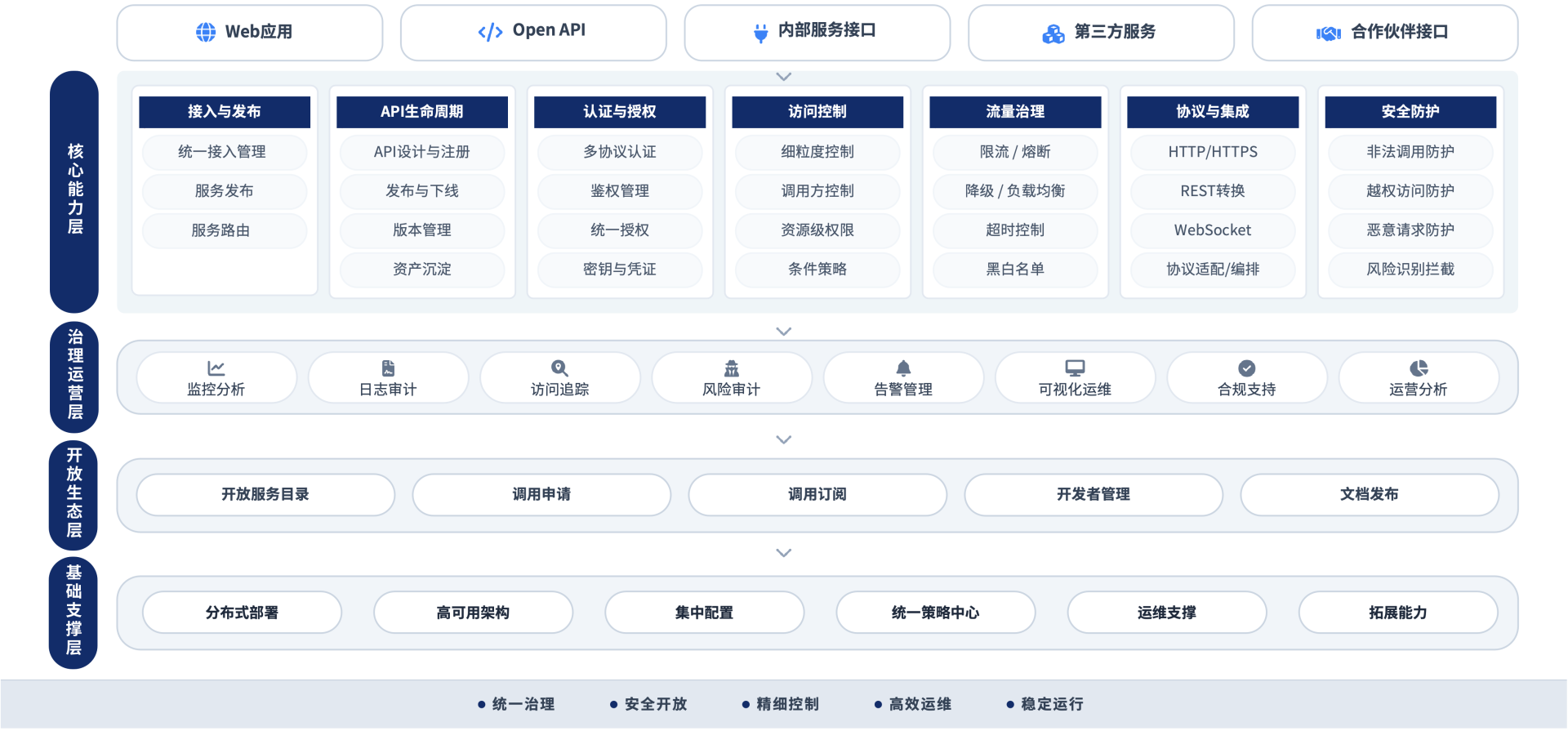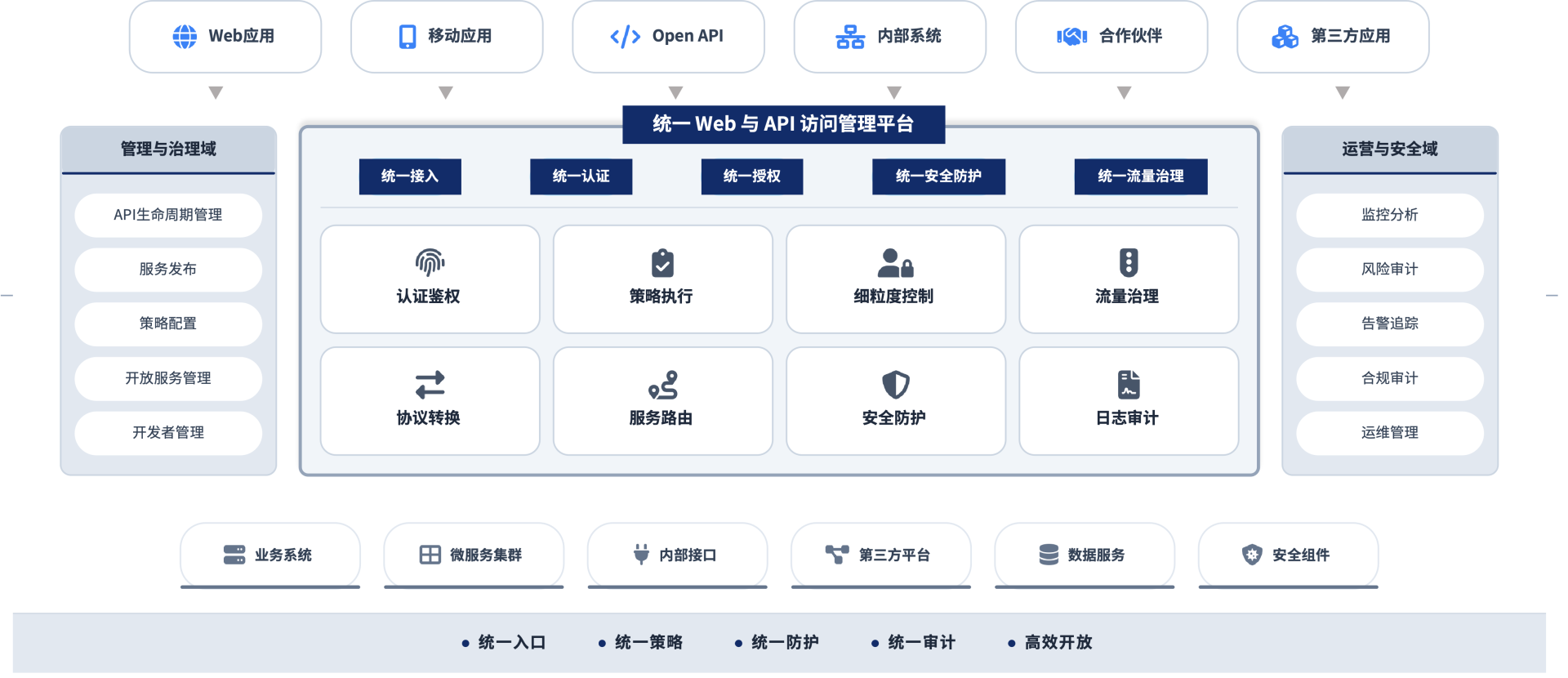 通过统一访问控制与服务治理能力,提升企业内部系统集成效率与外部服务开放能力,加速业务协同与生态连接。