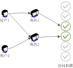当用户2需要增加权限时该概念图已无法解决,需要重新创建新的角色与新权限关联后再赋予给用户2。意味着业务的变化会引起新的角色层次结构的变化,而且角色数量会随着用户数量的增加而增加,时间一久导致用户对应角色的积累赋予其过多的权限,存在角色用户管理问题。