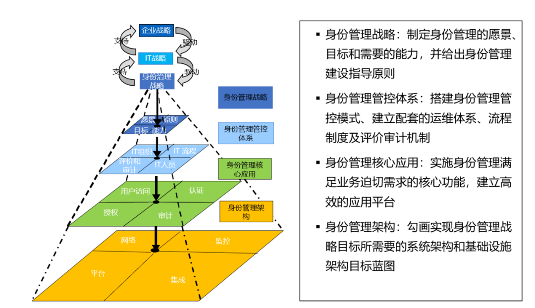 身份治理作为企业基础安全平台,已成为信息安全新边界和信息安全短板,针对企业身份治理规划设计,需要结合企业的战略规划与IT规划,制定符合企业业务发展与管理模式的身份治理规划蓝图。