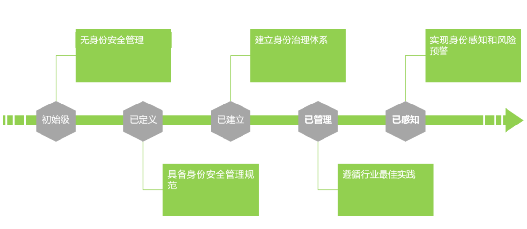 身份治理规划依据从无到有、从有到优德原则进行设计,实现由初始、定义、建立、管理到感知的全过程建设。