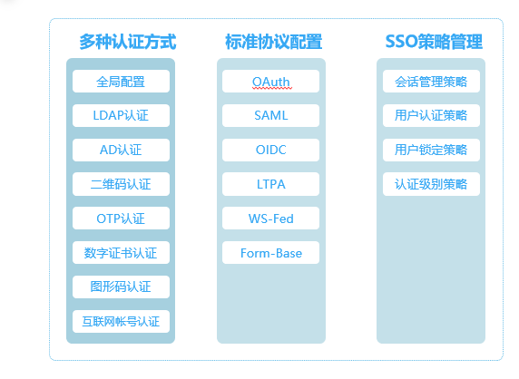 应用系统的单点登录集成过程中,不同的应用系统可能支持的协议不一样,平台需要提供多种协议便于应用系统接入,另外针对不同开发语言的也需要有相应的支持。