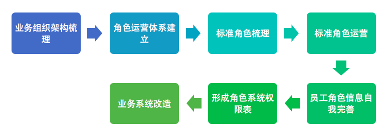 在经过了大量的基于角色的统一权限项目实践,我们在做基于角色的统一权限时,可以简单理解其本质是对企业整个信息化系统角色的统一,通过统一角色来实现统一权限管理。我们往往会按照以下步骤进行: