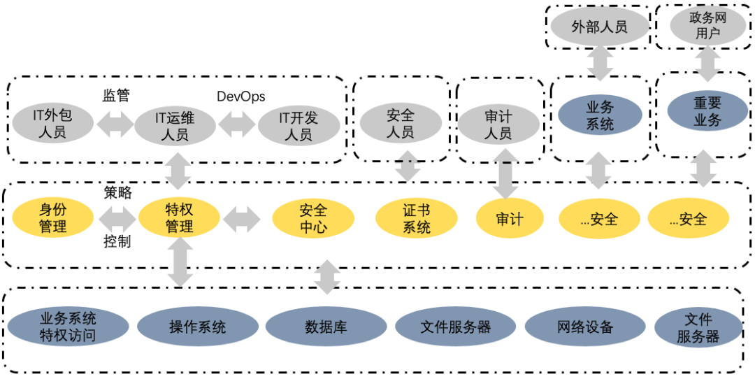 针对上述问题与痛点,结合国家层面法律法规,例如《网络安全法》、《信息安全等级保护条例2.0》,以及国家信息中心、国家电子政务外网管理中心对政务数据共享平台接入的安全控制规范要求,建立可信数字身份的统一安全管理平台,作为政务数据交换平台的安全基础架构。