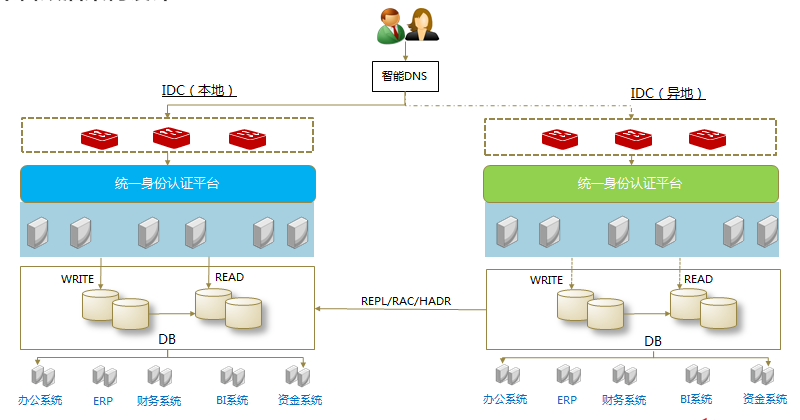 但针对规模较大的集团类型企业,需要考虑建设异地灾备中心的部署架构,以保障切换到灾备中心时业务访问的连续性。
