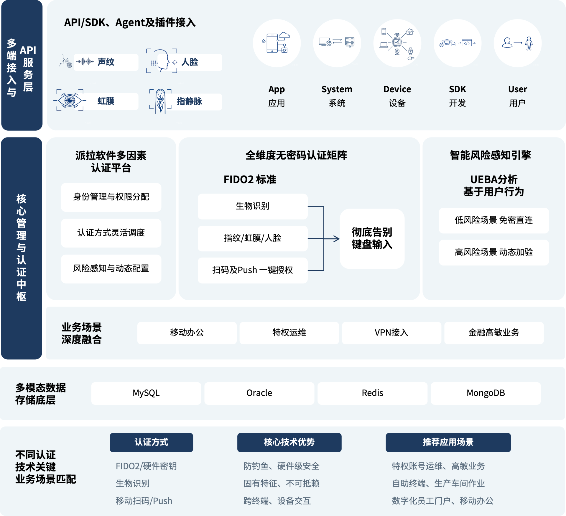深度集成SSO,实现一次无密验证、全量业务通行,消除应用切换间的重复认证干扰。